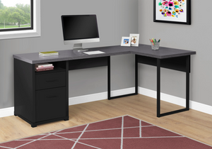 BUREAU D'ORDINATEUR - 80"L / NOIR / GRIS DESSUS GAUCHE/DROITE